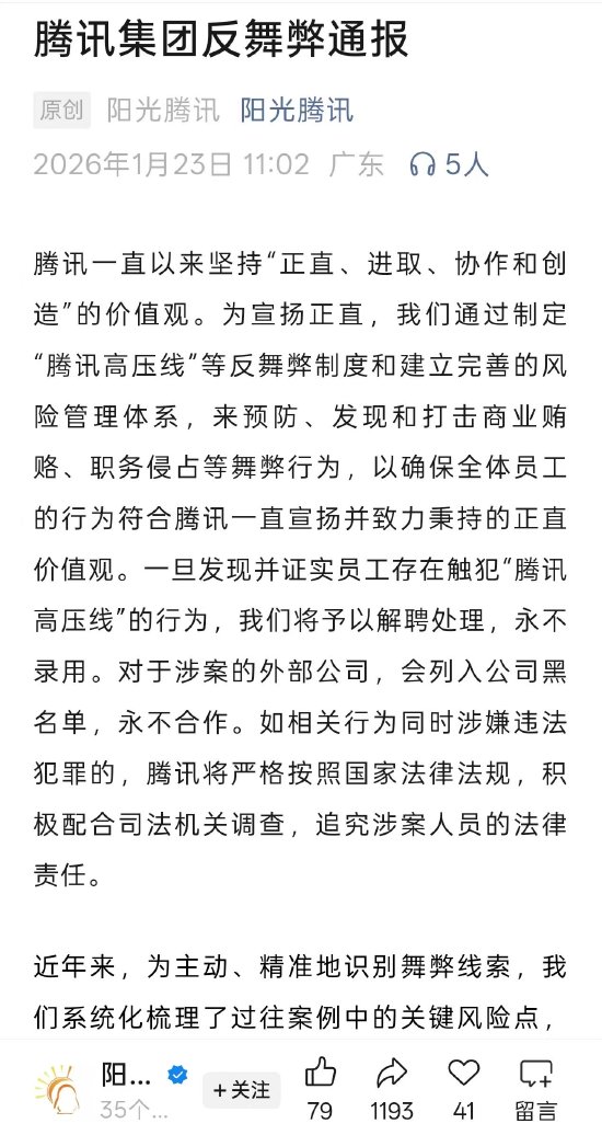 官方暗意,如发现任何腾讯职工存在可能触犯“腾讯高压线”的作为,不错通过多种门道关连腾讯反作弊拜谒部。